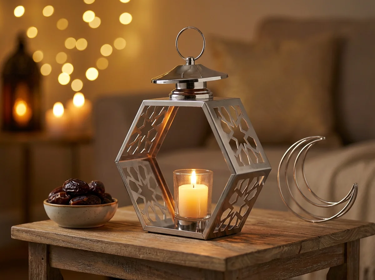 يعد الفانوس السداسي الفضي قطعة ديكور رمضانية أنيقة تضيف لمسة مضيئة إلى أي ركن في المنزل. تصميمه السداسي الكلاسيكي يجمع بين البساطة والرقي، مما يجعله مناسبًا لغرف المعيشة، وغرف الاستقبال، والشرفات، وغيرها من المساحات الداخلية.